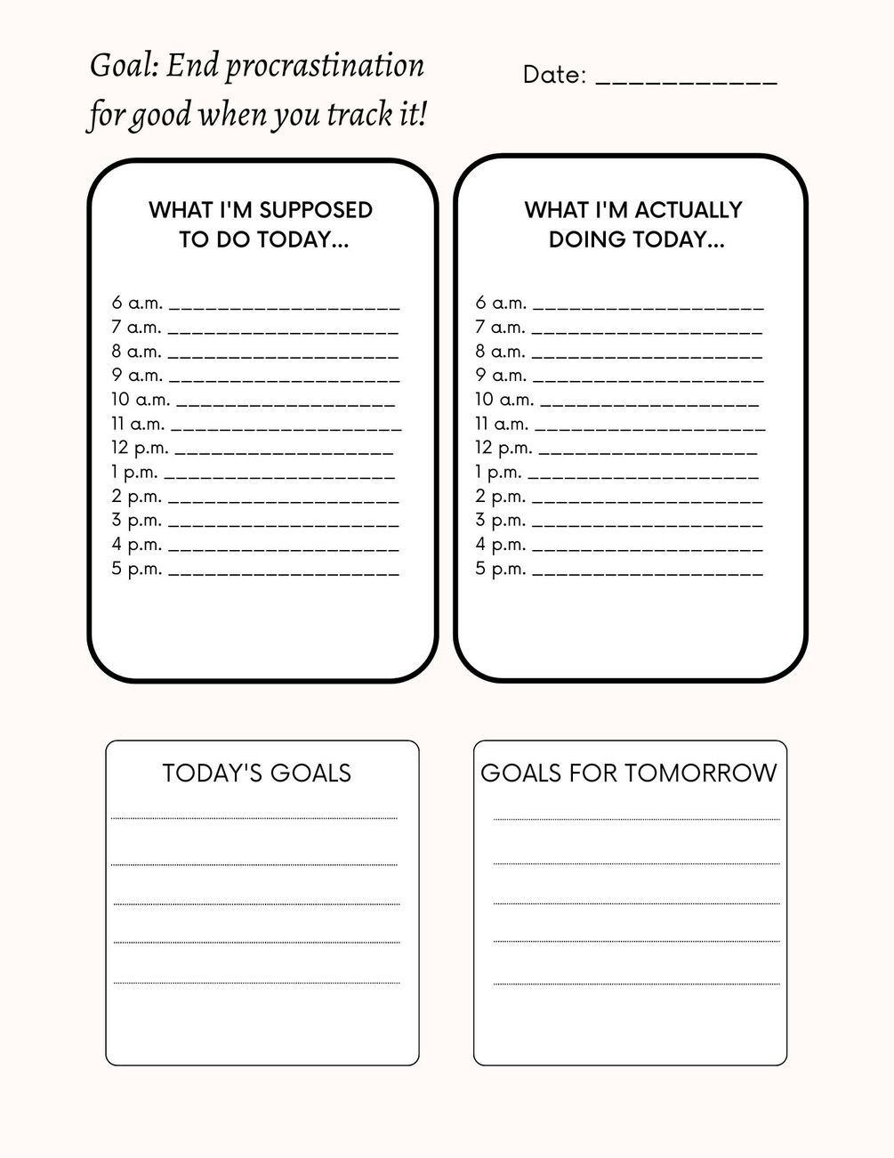 You'll receive one (1) downloadable productivity tracking sheet